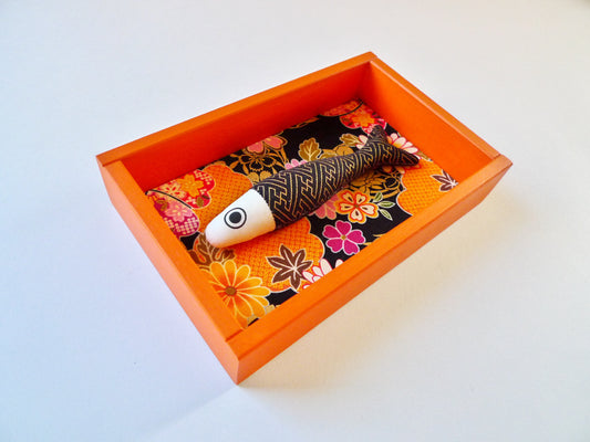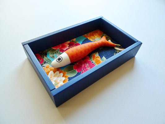 FISHBOX - pesce imbottito in cornice di legno arancio
