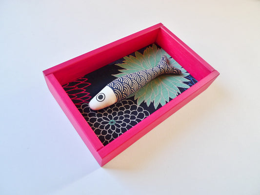 FISHBOX - pesce imbottito in cornice di legno magenta
