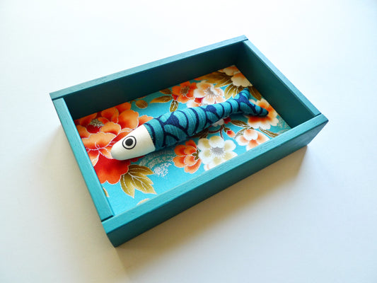 FISHBOX large - pesce imbottito in cornice di legno blu