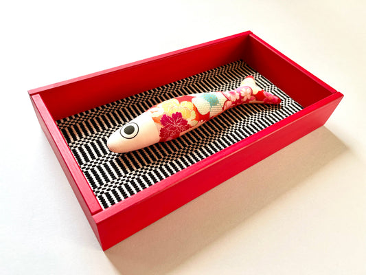 FLOW BOX - coppia di cornici di legno rosso con pesce spezzato