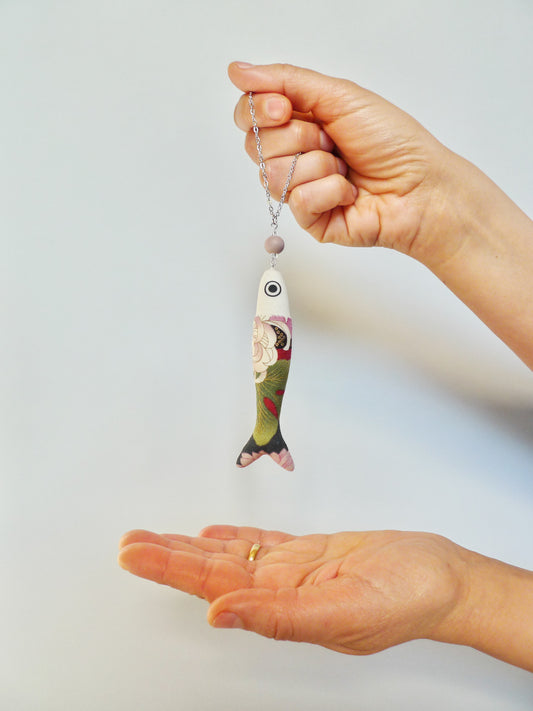 O-MAMORI - ciondolo in legno e seta da kimono vintage