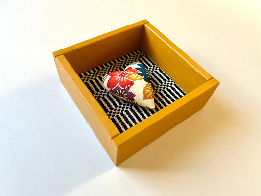 TETRAGONON - cuore imbottito in cornice di legno giallo senape